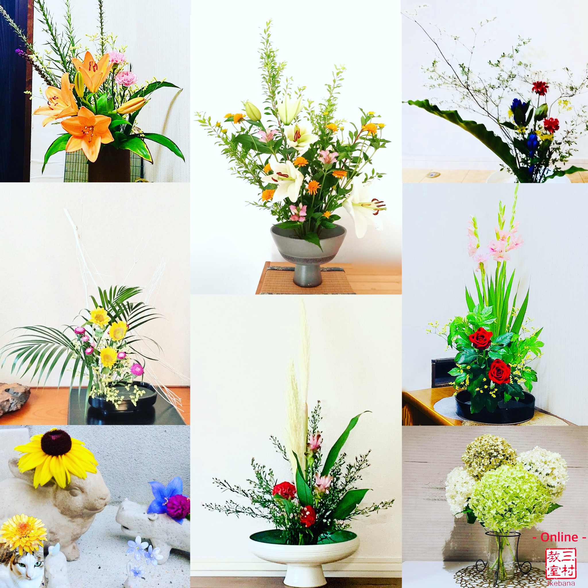 The collection of students’ ikebana works and Online lesson at home