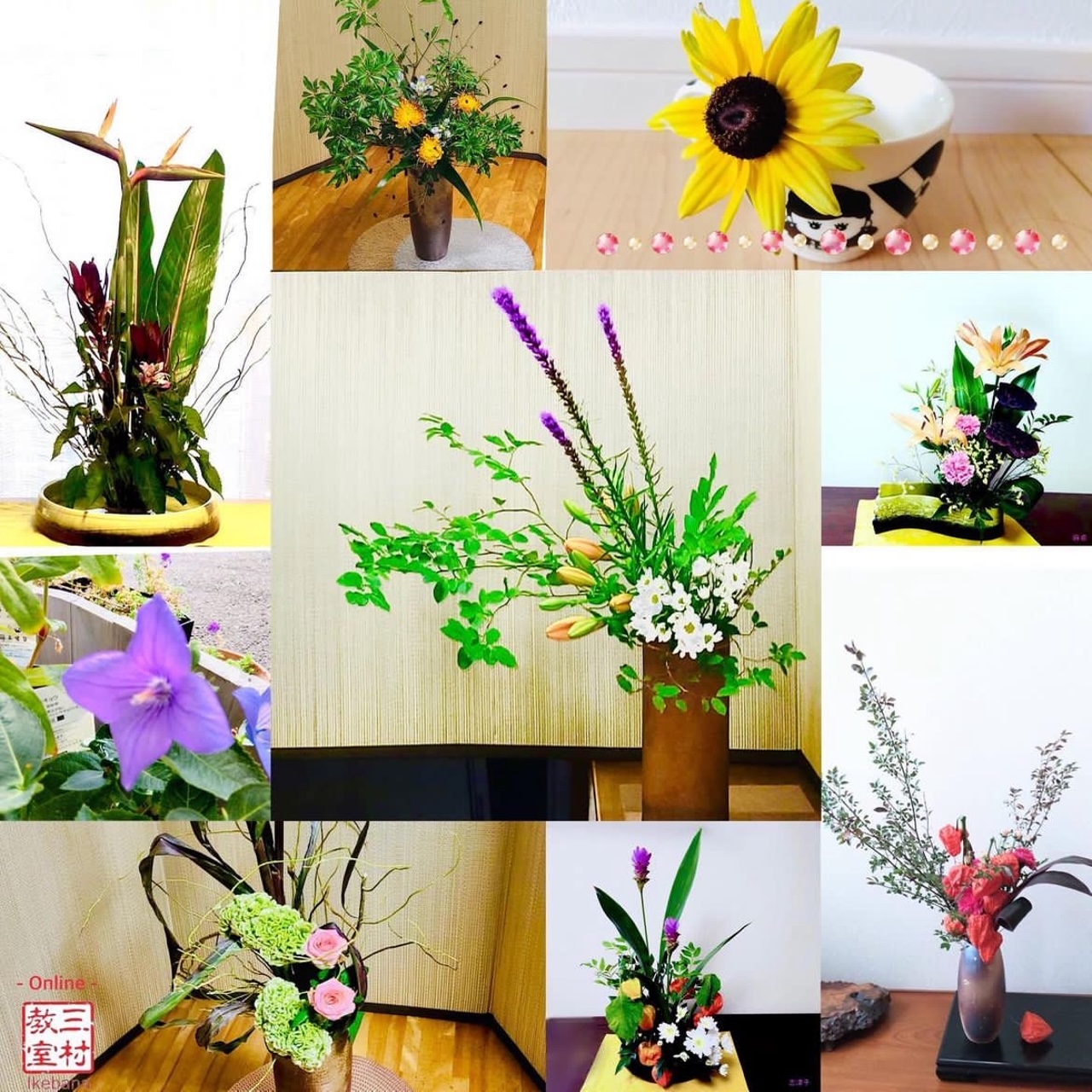 The collection of students’ ikebana works and Online lesson at home