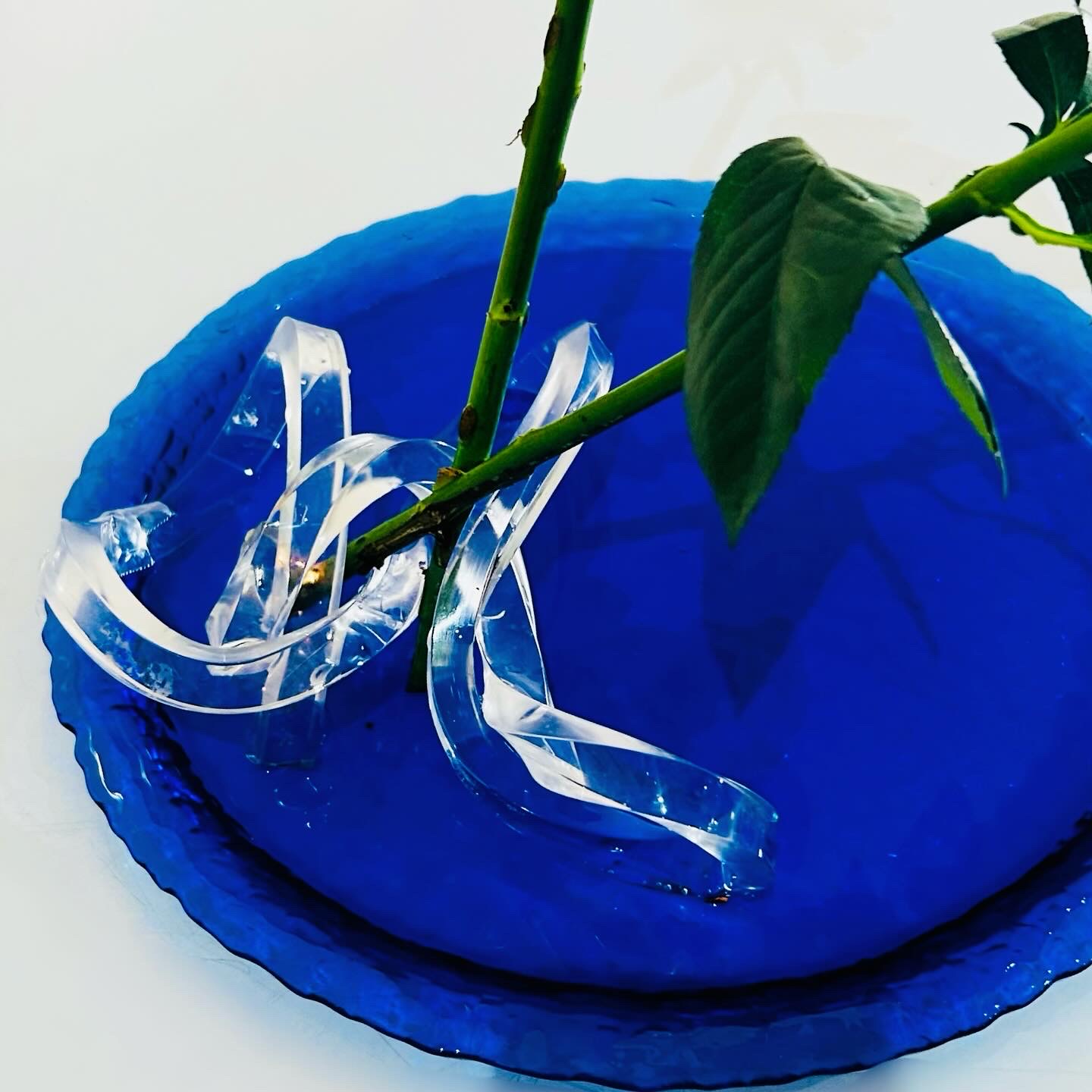 涼しそうなので青いガラスのお皿に置いて